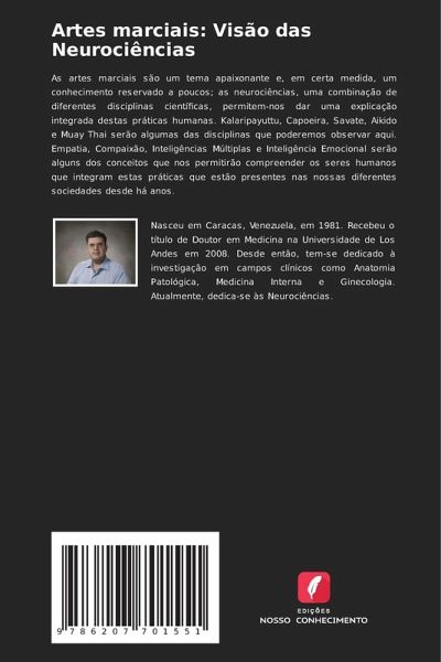 As artes marciais são um tema apaixonante e, em certa medida, um conhecimento reservado a poucos; as neurociências, uma combinação de diferentes disciplinas científicas, permitem-nos dar uma explicação integrada destas práticas humanas. Kalaripayuttu, Capoeira, Savate, Aikido e Muay Thai serão algumas das disciplinas que poderemos observar aqui. Empatia, Compaixão, Inteligências Múltiplas e Inteligência Emocional serão alguns dos conceitos que nos permitirão compreender os seres humanos que integram estas práticas que estão presentes nas nossas diferentes sociedades desde há anos.