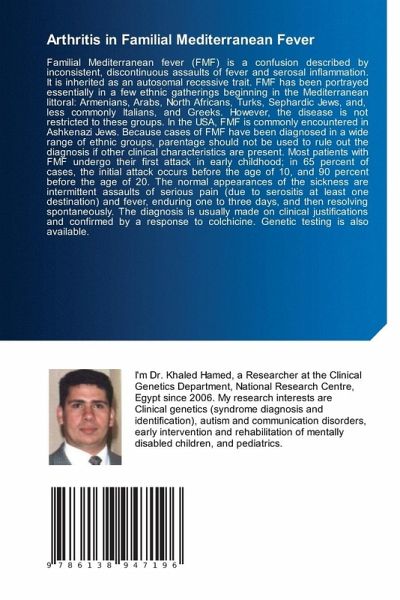 Familial Mediterranean fever (FMF) is a confusion described by inconsistent, discontinuous assaults of fever and serosal inflammation. It is inherited as an autosomal recessive trait. FMF has been portrayed essentially in a few ethnic gatherings beginning in the Mediterranean littoral: Armenians, Arabs, North Africans, Turks, Sephardic Jews, and, less commonly Italians, and Greeks. However, the disease is not restricted to these groups. In the USA, FMF is commonly encountered in Ashkenazi Jews. Because cases of FMF have been diagnosed in a wide range of ethnic groups, parentage should not be used to rule out the diagnosis if other clinical characteristics are present. Most patients with FMF undergo their first attack in early childhood; in 65 percent of cases, the initial attack occurs before the age of 10, and 90 percent before the age of 20. The normal appearances of the sickness are intermittent assaults of serious pain (due to serositis at least one destination) and fever, enduring one to three days, and then resolving spontaneously. The diagnosis is usually made on clinical justifications and confirmed by a response to colchicine. Genetic testing is also available.