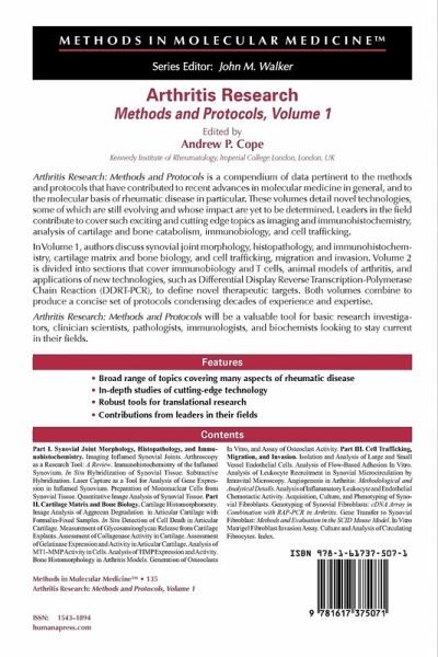 Arthritis Research: Methods and Protocols will be a valuable tool for basic research investigators, clinician scientists, pathologists, immunologists, and biochemists looking to stay current in their fields.