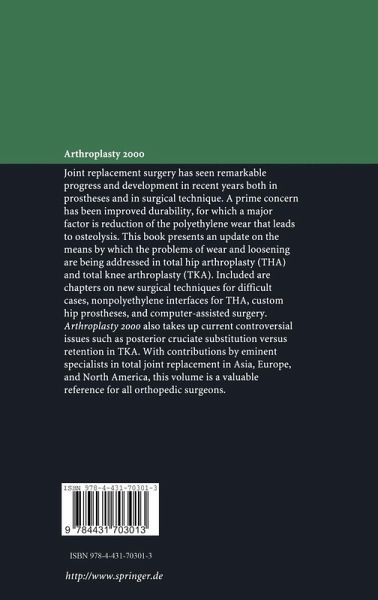 Joint replacement surgery has seen remarkable progress and development in recent years both in prostheses and in surgical technique. A prime concern has been improved durability, for which a major factor is reduction of the polyethylene wear that leads to osteolysis. This book presents an update on the means by which the problems of wear and loosening are being addressed in total hip arthroplasty (THA) and total knee arthroplasty (TKA). Included are chapters on new surgical techniques for difficult cases, nonpolyethylene interfaces for THA, custom hip prostheses, and computer-assisted surgery. Arthroplasty 2000 also takes up current controversial issues such as posterior cruciate substitution versus retention in TKA. With contributions by eminent specialists in total joint replacement in Asia, Europe, and North America, this volume is a valuable reference for all orthopedic surgeons.