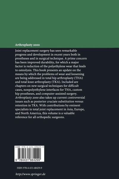 Joint replacement surgery has seen remarkable progress and development in recent years both in prostheses and in surgical technique. A prime concern has been improved durability, for which a major factor is reduction of the polyethylene wear that leads to osteolysis. This book presents an update on the means by which the problems of wear and loosening are being addressed in total hip arthroplasty (THA) and total knee arthroplasty (TKA). Included are chapters on new surgical techniques for difficult cases, nonpolyethylene interfaces for THA, custom hip prostheses, and computer-assisted surgery. Arthroplasty 2000 also takes up current controversial issues such as posterior cruciate substitution versus retention in TKA. With contributions by eminent specialists in total joint replacement in Asia, Europe, and North America, this volume is a valuable reference for all orthopedic surgeons.