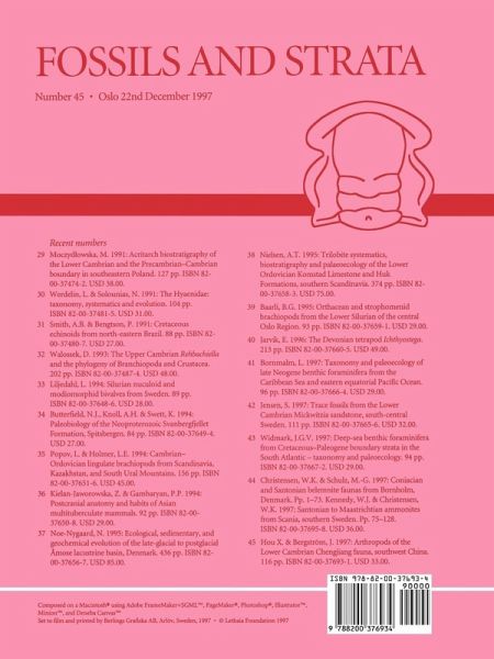 The definitive guide to fossils of the Lower Cambrian Chengjiang Fauna Fossils and Strata, Number 45 covers arthropods of the Lower Cambrian Chengjiang Fauna in Southwest China. Starting off with a brief introduction and overview of the geological setting of the area, the book moves quickly into the details. It covers the fourteen biozones of the Lower Cambrian of eastern Yunnan, small shelly fossils, trilobites, and many other topics.