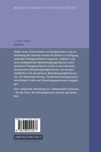 Neben neuen Erkenntnissen zur Knorpelstruktur und zur Entstehung der Arthrose werden die derzeit zur Verfügung stehenden Therapieverfahren vorgestellt. Etablierte und neue medikamentöse Behandlungsmöglichkeiten sowie alternative Therapieverfahren werden in dem Abschnitt 'Konservative Behandlungsmöglichkeiten' beschrieben. Ausführlich wird auch auf operative Behandlungsmöglichkeiten wie z.B. Mikrofrakturierung, Chondrozytentransplantation, verschiedene Grafts und Umstellungsoperationen eingegangen.Eine umfassende Darstellung zur "Volkskrankheit Arthrose" - für alle Ärzte, die Arthrosepatienten beraten und behandeln.