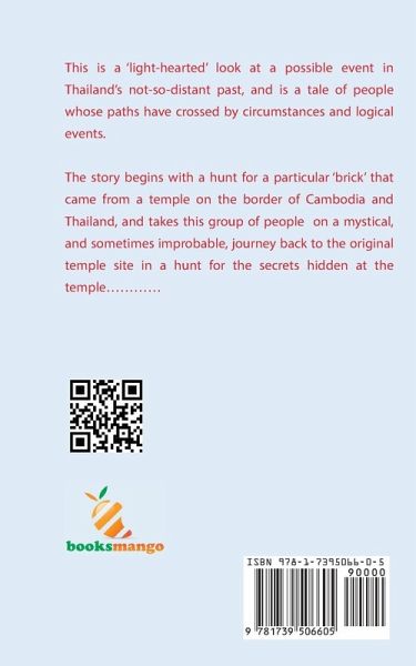 This is a tale about a brick, '3462006AdA', which was sent to a university lecturer in England. Thinking it might have some important significance this man, Bill Ward, travelled to Thailand to investigate. The brick led Bill and his two friends Arthur and Wi on an adventure to find a legendary treasure which was hidden in or around a temple on the borders of Thailand and Cambodia. Follow this intrepid trio as they go on this magical, and sometimes improbable, search for this mythical treasure.