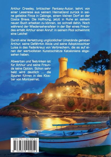 Arthur Crawley, britischer Fantasy-Autor, kehrt von einer Lesereise aus seinem Heimatland zurück in seine geliebte Finca in Calonge, einem kleinen Dorf an der Costa Brava. Die Hoffnung, jetzt in Ruhe an seinem neuen Buch arbeiten zu können, ist schnell dahin. Noch während der Wiedersehensfeier in der Bar eines Freundes erhält Arthur einen Anruf: in seinem Pool schwimmt eine Leiche!Durch eine Verkettung unglücklicher Umstände geraten Arthur, seine Gefährtin Alicia und seine Adoptivtochter Luisa in das Fadenkreuz von Verbrechern, die es auf einen der wertvollsten Kunstschätze Kataloniens abgesehen haben.Abwarten und Teetrinken ist für Arthur und seine Freunde keine Option. Schon sehr bald wird deutlich ... die Spuren führen in das Kloster von Montserrat.Band 2 der humorvollen Krimireihe - natürlich wieder mit ein wenig Chaos an der Costa Brava und liebenswerten Menschen und Arthurs Katzen