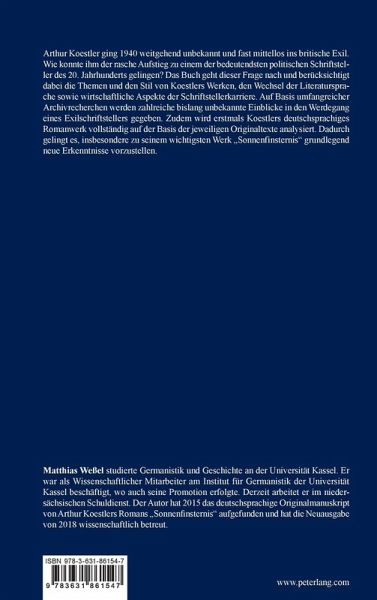 Arthur Koestler ging 1940 weitgehend unbekannt und fast mittellos ins britische Exil. Wie konnte ihm der rasche Aufstieg zu einem der bedeutendsten politischen Schriftsteller des 20. Jahrhunderts gelingen? Das Buch geht dieser Frage nach und berücksichtigt dabei die Themen und den Stil von Koestlers Werken, den Wechsel der Literatursprache sowie wirtschaftliche Aspekte der Schriftstellerkarriere. Auf Basis umfangreicher Archivrecherchen werden zahlreiche bislang unbekannte Einblicke in den Werdegang eines Exilschriftstellers gegeben. Zudem wird erstmals Koestlers deutschsprachiges Romanwerk vollständig auf der Basis der jeweiligen Originaltexte analysiert. Dadurch gelingt es, insbesondere zu seinem wichtigsten Werk "Sonnenfinsternis" grundlegend neue Erkenntnisse vorzustellen.
