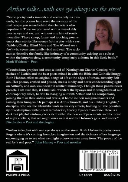 Poetry about the homeless and how their lives evoke the legendary figure of King Arthur. Some poetry looks inwards and serves only its own ends, but the poems here serve the memory of the real people you sense behind the characters who populate it. They are portrayed with a remarkably precise eye and ear, and without any hint of sentimentality. These sharp, funny and touching poems enact their stories like scenes from a play with a cast (Spider, Chalky, Blind Mary and The Weasel are a few) who seem unnaturally vivid and real. The nicknames describe the family-like intimacy of a community existing as a subset within the larger society, a community completely at home in this lively book.