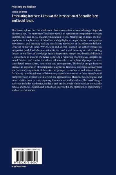 This book explores the ethical dilemma clinicians may face when disclosing a diagnosis of atypical sex. The moment of disclosure reveals an epistemic incompatibility between scientific fact and social meaning in relation to sex. Attempting to assess the bio-psychosocial implications of this dilemma highlights a complex historic antagonism between fact and meaning making satisfactory resolution of this dilemma difficult. Drawing on David Hume, WVO Quine and Michel Foucault the author presents an integrative model, which views scientific fact and social meaning as codetermining threads in one fabric of knowledge. From this epistemic perspective, the ethical dilemma is understood as a tear in the fabric signifying a rupturing of ontological integrity. To mend this tear and resolve the ethical dilemma three metaphysical perspectives are considered: essentialism, naturalism and emergentism. The book's unique features include: an exploration of the impact of diagnostic disclosure on people with atypical sex (intersex); a synthesis of the epistemic perspectives of social and natural science facilitating interdisciplinary collaboration; a critical evaluation of three metaphysical perspectives on atypical sex (intersex); the application of Hume's epistemological and moral distinctions to contemporary biomedicine and bioethics. The book's target audience includes academics, students and professionals whose work intersects the natural and social sciences, and individuals interested in the metaphysics, epistemology and meta-ethics of sex.