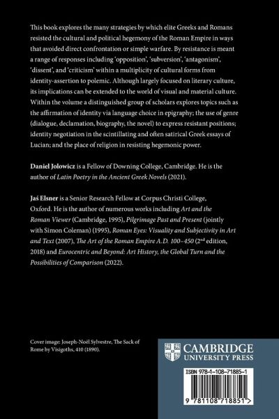 Introduction: Articulating resistance Daniel Jolowicz and Jä Elsner; Part I. Language and Identity: 1. Linguistic resistance to Rome: A reappraisal of the epigraphic evidence Katherine McDonald and Nicholas Zair; Part II. Genres of Literary Resistance: 2. Courtroom rhetoric in imperial and late antique philosophical dialogues Dawn LaValle Norman; 3. Greek declamation and the art of resistance Will Guast; 4. Plutarch's parallelism and resistance Eran Almagor; 5. A glitch in the matrix: Aphrodisias, Rome and imperial Greek fiction Daniel Jolowicz; Part III. Identity Negotiation: 6. Portraying power: Lucian's imagines and Marcus Aurelius' meditations Nicolò D'Alconzo; 7. Satire and the polis in Lucian's Timon or The Misanthrope Aneurin Ellis-Evans; Part IV. Religion and Resistance: 8. Anti-Roman Sibyl(s) Helen Van Noorden; 9. Traditions of resistance in Greco-Egyptian narratives Ian Rutherford; 10. Julian the emperor and the reaction against Christianity: A case study of resistance from the top Lea Niccolai; Epilogue: Resisting resistance Simon Goldhill.