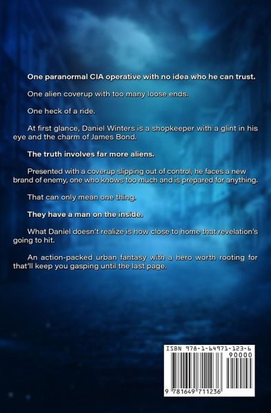 One paranormal CIA operative with no idea who he can trust. One alien coverup with too many loose ends. One heck of a ride. At first glance, Daniel Winters is a shopkeeper with a glint in his eye and the charm of James Bond. The truth involves far more aliens. Presented with a coverup slipping out of control, he faces a new brand of enemy, one who knows too much and is prepared for anything. That can only mean one thing. They have a man on the inside. What Daniel doesn't realize is how close to home that revelation's going to hit. An action-packed urban fantasy with a hero worth rooting for that'll keep you gasping until the last page. Click BUY NOW and read this twisty thrill ride today!