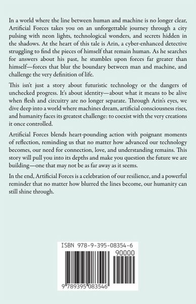 In a world where the line between human and machine is no longer clear, Artificial Forces takes you on an unforgettable journey through a city pulsing with neon lights, technological wonders, and secrets hidden in the shadows. At the heart of this tale is Arin, a cyber-enhanced detective struggling to find the pieces of himself that remain human. As he searches for answers about his past, he stumbles upon forces far greater than himself-forces that blur the boundary between man and machine, and challenge the very definition of life. This isn't just a story about futuristic technology or the dangers of unchecked progress. It's about identity-about what it means to be alive when flesh and circuitry are no longer separate. Through Arin's eyes, we dive deep into a world where machines dream, artificial consciousness rises, and humanity faces its greatest challenge: to coexist with the very creations it once controlled. Artificial Forces blends heart-pounding action with poignant moments of reflection, reminding us that no matter how advanced our technology becomes, our need for connection, love, and understanding remains. This story will pull you into its depths and make you question the future we are building-one that may not be as far away as it seems. In the end, Artificial Forces is a celebration of our resilience, and a powerful reminder that no matter how blurred the lines become, our humanity can still shine through.