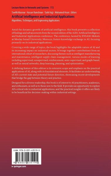 Covering a wide range of topics, the book highlights the adaptable nature of AI and its increasing impact on industrial sectors. It brings together contributions from an international cohort of researchers, discussing themes such as intelligent manufacturing and maintenance, intelligent supply chain management, various modes of learning including supervised, unsupervised, reinforcement, semi-supervised, and graph-based, as well as neural networks, deep learning, planning, and optimization.