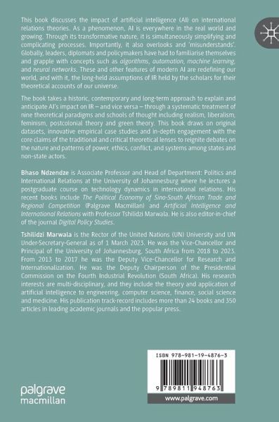 The book takes a historic, contemporary and long-term approach to explain and anticipate AI's impact on IR - and vice versa - through a systematic treatment of 9 theoretical paradigms and schools of thought including realism, liberalism, feminism, postcolonial theory and green theory. This book draws on original datasets, innovative empirical case studies and in-depth engagement with the core claims of the traditional and critical theoretical lenses to reignite debates on the nature and patterns of power, ethics, conflict, and systems among states and non-state actors.