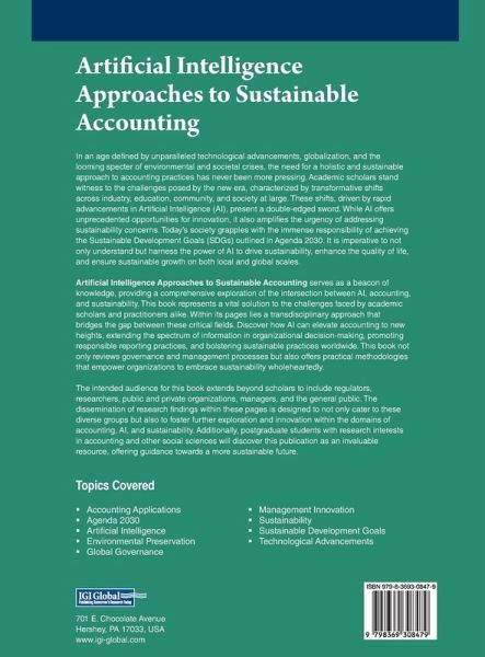 In an age defined by unparalleled technological advancements, globalization, and the looming specter of environmental and societal crises, the need for a holistic and sustainable approach to accounting practices has never been more pressing. Academic scholars stand witness to the challenges posed by the new era, characterized by transformative shifts across industry, education, community, and society at large. These shifts, driven by rapid advancements in Artificial Intelligence (AI), present a double-edged sword. While AI offers unprecedented opportunities for innovation, it also amplifies the urgency of addressing sustainability concerns. Today's society grapples with the immense responsibility of achieving the Sustainable Development Goals (SDGs) outlined in Agenda 2030. It is imperative to not only understand but harness the power of AI to drive sustainability, enhance the quality of life, and ensure sustainable growth on both local and global scales. Artificial Intelligence Approaches to Sustainable Accounting serves as a beacon of knowledge, providing a comprehensive exploration of the intersection between AI, accounting, and sustainability. This book represents a vital solution to the challenges faced by academic scholars and practitioners alike. Within its pages lies a transdisciplinary approach that bridges the gap between these critical fields. Discover how AI can elevate accounting to new heights, extending the spectrum of information in organizational decision-making, promoting responsible reporting practices, and bolstering sustainable practices worldwide. This book not only reviews governance and management processes but also offers practical methodologies that empower organizations to embrace sustainability wholeheartedly.