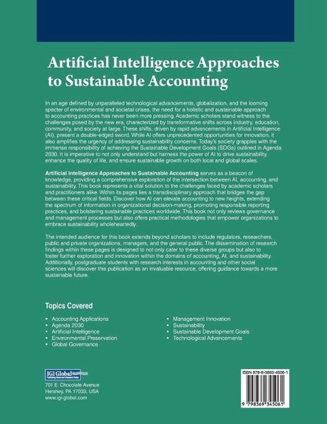 In an age defined by unparalleled technological advancements, globalization, and the looming specter of environmental and societal crises, the need for a holistic and sustainable approach to accounting practices has never been more pressing. Academic scholars stand witness to the challenges posed by the new era, characterized by transformative shifts across industry, education, community, and society at large. These shifts, driven by rapid advancements in Artificial Intelligence (AI), present a double-edged sword. While AI offers unprecedented opportunities for innovation, it also amplifies the urgency of addressing sustainability concerns. Today's society grapples with the immense responsibility of achieving the Sustainable Development Goals (SDGs) outlined in Agenda 2030. It is imperative to not only understand but harness the power of AI to drive sustainability, enhance the quality of life, and ensure sustainable growth on both local and global scales. Artificial Intelligence Approaches to Sustainable Accounting serves as a beacon of knowledge, providing a comprehensive exploration of the intersection between AI, accounting, and sustainability. This book represents a vital solution to the challenges faced by academic scholars and practitioners alike. Within its pages lies a transdisciplinary approach that bridges the gap between these critical fields. Discover how AI can elevate accounting to new heights, extending the spectrum of information in organizational decision-making, promoting responsible reporting practices, and bolstering sustainable practices worldwide. This book not only reviews governance and management processes but also offers practical methodologies that empower organizations to embrace sustainability wholeheartedly.