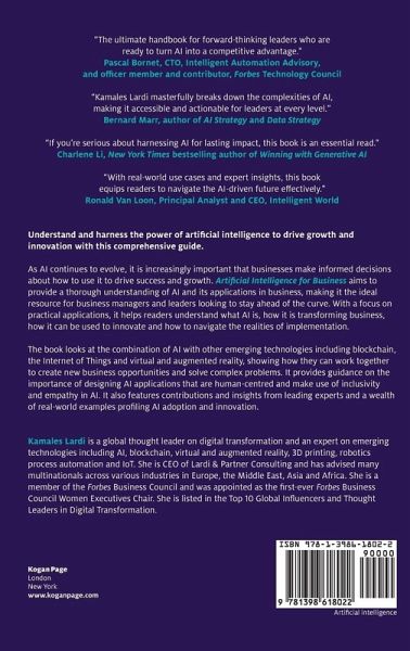 Understand and harness the power of artificial intelligence to drive growth and innovation with this comprehensive guide. As AI continues to evolve, it is increasingly important for businesses to make informed decisions about how to use AI to drive success and growth. Artificial Intelligence for Business aims to provide a comprehensive understanding of AI and its applications in business, making it the ideal resource for business managers and leaders looking to stay ahead of the curve. With a focus on practical applications, it helps readers understand what AI is, how it is transforming business, how it can be used to innovate and how to navigate the realities of implementation. This book looks at the combination of AI with other emerging technologies such as blockchain, internet of things and virtual and augmented reality, showing how these can work together to create new business opportunities and solve complex business problems. It provides guidance on the importance of designing AI applications that are human-centred, including inclusive design and empathy in AI. It also features contributions and insights from leading experts and a wealth of real-world examples profiling AI adoption and innovation.