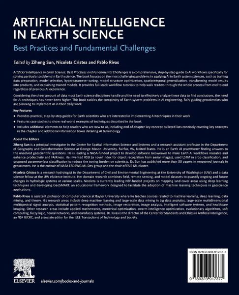 Artificial Intelligence in Earth Science: Best Practices and Fundamental Challenges provides a comprehensive, step-by-step guide to AI workflows for solving problems in Earth Science. The book focuses on the most challenging problems in applying AI in Earth system sciences, such as training data preparation, model selection, hyperparameter tuning, model structure optimization, spatiotemporal generalization, transforming model results into products, and explaining trained models. In addition, it provides full-stack workflow tutorials to help walk readers through the whole process, regardless of previous AI experience. The book tackles the complexity of Earth system problems in AI engineering, fully guiding geoscientists who are planning to implement AI in their daily work.