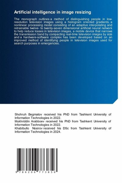 The monograph outlines a method of distinguishing people in low-resolution television images using a histogram oriented gradients, a nonlinear processing model consisting of an adaptive interpolating and retrainable twelve- to twenty-seven dimensional artificial neural network to help reduce losses in television images, a mobile device that narrows the transmission band by compacting real-time television images by size and a hardware-software complex has been developed based on an improved method of identifying people in television images used for search purposes in emergencies.