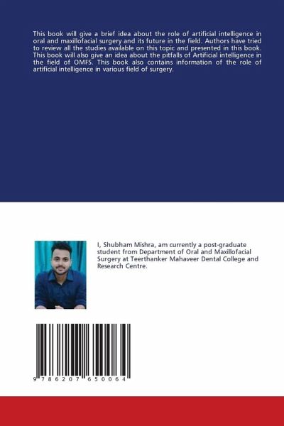 This book will give a brief idea about the role of artificial intelligence in oral and maxillofacial surgery and its future in the field. Authors have tried to review all the studies available on this topic and presented in this book. This book will also give an idea about the pitfalls of Artificial intelligence in the field of OMFS. This book also contains information of the role of artificial intelligence in various field of surgery.
