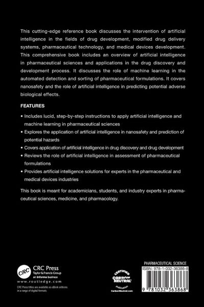 This cutting-edge reference book discusses the intervention of artificial intelligence in the fields of drug development, modified drug delivery systems, pharmaceutical technology, and medical devices development. This comprehensive book includes an overview of artificial intelligence in pharmaceutical sciences and applications in the drug discovery and development process. It discusses the role of machine learning in the automated detection and sorting of pharmaceutical formulations. It covers nanosafety and the role of artificial intelligence in predicting potential adverse biological effects.