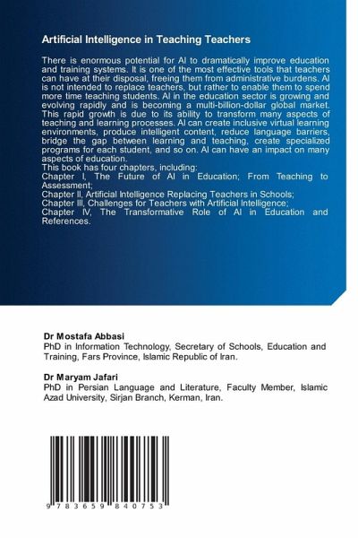There is enormous potential for AI to dramatically improve education and training systems. It is one of the most effective tools that teachers can have at their disposal, freeing them from administrative burdens. AI is not intended to replace teachers, but rather to enable them to spend more time teaching students. AI in the education sector is growing and evolving rapidly and is becoming a multi-billion-dollar global market. This rapid growth is due to its ability to transform many aspects of teaching and learning processes. AI can create inclusive virtual learning environments, produce intelligent content, reduce language barriers, bridge the gap between learning and teaching, create specialized programs for each student, and so on. AI can have an impact on many aspects of education.This book has four chapters, including: Chapter I, The Future of AI in Education; From Teaching to Assessment;Chapter II, Artificial Intelligence Replacing Teachers in Schools;Chapter III, Challenges for Teachers with Artificial Intelligence;Chapter IV, The Transformative Role of AI in Education and References.