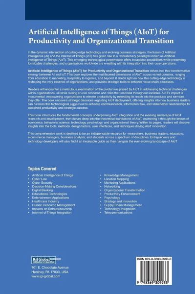 In the dynamic intersection of cutting-edge technology and evolving business strategies, the fusion of Artificial Intelligence (AI) and the Internet of Things (IoT) has given rise to a revolutionary paradigm known as Artificial Intelligence of Things (AIoT). This emerging technological powerhouse offers boundless possibilities while presenting formidable challenges, and organizations worldwide are wrestling with its integration into their core operations. Artificial Intelligence of Things (AIoT) for Productivity and Organizational Transition introduces the fundamental concepts underpinning AIoT integration and the evolving landscape of AIoT research and development, then delves deep into the theoretical foundations of AIoT, examining it through the lenses of economics, behavioral science, technology, psychology, and organizational theory. Within its pages, readers will discover insights into the tools, methods, design factors, user interfaces, and techniques driving AIoT innovation.