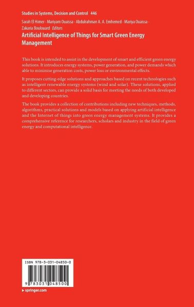 Artificial Intelligence of Things (AIoT) for Renewable Energies Systems.- Design of a Switching Module for Electricity Supply from Solar to Grid by Sensing Light Intensity.- Nonlinear Backstepping Control of a Grid-Connected Doubly Fed Induction Generator Wind Turbine.- Improving LVRT Capability of a Wind Turbine During a Voltage Sag in the Electrical Network.- Optimization of Two Hybrid Micro-Concentrator Photovoltaic Systems for Car-Roof Application.- Machine Learning-based Maximum Power Point Tracking Technique for Concentrated PV/TEG System under Non-Uniform Environmental Conditions.- Two-Dimensional Nanomaterials for Solar Cell Technology.- Improving Control for an Induction Machine using Artificial Intelligence.- Evaluation of the Recommended Algorithms in the Internet of Things.- Exposing Applications of IoT in Green Computing.