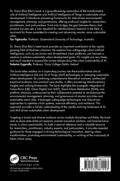Simon Elias Bibri, PhD, is a senior research scientist and project coordinator at the Swiss Federal Institute of Technology Lausanne (EPFL), Institute of Computer and Communication Sciences (IINFCOM), School of Architecture, Civil and Environmental Engineering (ENAC), and Media and Design Laboratory (LDM). He has a diverse professional background, having served as head of a computer department, software engineer, information technology (IT) business engineer, project manager, green information and communications technology (ICT) and environmental sustainability strategist, research associate, assistant professor, and consultant. Currently, he is an expert in Artificial Intelligence and Applied Machine Learning for Climate Action for the United Nations Framework Convention on Climate Change (UNFCCC), an international expert in Sustainable Cities for the United Nations Industrial Development Organization (UNIDO), and an expert for Focus Group for Smart Sustainable Cities, Environmental Sustainability, and Digital Twin for the United Nations Agency of International Telecommunication Union (ITU). He also holds the position of Editor¿in¿Chief of the International Journal of Environmental Studies at Taylor & Francis Group. Dr. Bibri's academic journey exemplifies both interdisciplinarity and transdisciplinarity, traversing and bridging the realms of science, technology, and society. This multifaceted background underscores his ability to navigate and contribute to various fields, thereby enriching the intersectional understanding and collaborative knowledge within these critical areas. His intellectual background encompasses computer science, computer engineering, systems science, innovation science, environmental science, social sciences, and humanities. He holds a bachelor's degree in computer engineering and an advanced management program (AMP) degree. Notably, he earned multiple master's degrees at esteemed Swedish universities, namely, Lund University, West University, Blekinge Institute of Technology, Stockholm University, Malmö University, and Mid¿Sweden University. Additionally, he earned a PhD in computer science at the Norwegian University of Science and Technology (NTNU), specializing in computational technology and urban informatics, with a research focus on datädriven smart sustainable cities. Dr. Bibri is a prolific author with numerous highly cited journal articles, six authored books, two edited books, and five co¿edited books to his credit. His work has been cited over 9,500 times, resulting in an h¿index of 47. His impact is further underscored by his recognition by Stanford and Elsevier as one of the top 2% of scientists globally for five consecutive years. He has also been listed by ScholarGPS in 2022 as the #1 highly ranked scholar in sustainable cities, #4 in big data, and #8 in sustainability in the world. Dr. Bibri's research interests and expertise cover a broad spectrum of areas at the intersection of science and technology, urban development and planning, and strategic sustainable development. These areas include smart cities, sustainable cities, smarter eco¿cities, sustainable smart cities, urban artificial intelligence, urban artificial intelligence of things, urban digital twin, smart urban metabolism, cyber¿physical systems of systems, Internet of City Things, platform urbanism, environmental planning and governance, environmental sustainability, climate change mitigation and adaptation, smart sustainable energy, smart sustainable transportation, smart sustainable waste management, sustainability transitions, and technological innovation systems.
