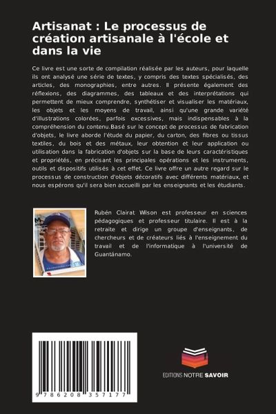 Ce livre est une sorte de compilation réalisée par les auteurs, pour laquelle ils ont analysé une série de textes, y compris des textes spécialisés, des articles, des monographies, entre autres. Il présente également des réflexions, des diagrammes, des tableaux et des interprétations qui permettent de mieux comprendre, synthétiser et visualiser les matériaux, les objets et les moyens de travail, ainsi qu'une grande variété d'illustrations colorées, parfois excessives, mais indispensables à la compréhension du contenu.Basé sur le concept de processus de fabrication d'objets, le livre aborde l'étude du papier, du carton, des fibres ou tissus textiles, du bois et des métaux, leur obtention et leur application ou utilisation dans la fabrication d'objets sur la base de leurs caractéristiques et propriétés, en précisant les principales opérations et les instruments, outils et dispositifs utilisés à cet effet. Ce livre offre un autre regard sur le processus de construction d'objets décoratifs avec différents matériaux, et nous espérons qu'il sera bien accueilli par les enseignants et les étudiants.