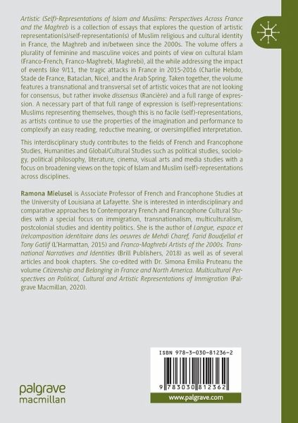 Artistic (Self)-Representations of Islam and Muslims: Perspectives Across France and the Maghreb is a collection of essays that explores the question of artistic representation(s)/self-representation(s) of Muslim religious and cultural identity in France, the Maghreb and in/between since the 2000s. The volume offers a plurality of feminine and masculine voices and points of view on cultural Islam (Franco-French, Franco-Maghrebi, Maghrebi), all the while addressing the impact of events like 9/11, the tragic attacks in France in 2015-2016 (Charlie Hebdo, Stade de France, Bataclan, Nice), and the Arab Spring. Taken together, the volume features a transnational and transversal set of artistic voices that are not looking for consensus, but rather invoke dissensus (Rancière) and a full range of expression. A necessary part of that full range of expression is (self)-representations: Muslims representing themselves, though this is no facile (self)-representations, as artists continue to use the properties of the imagination and performance to complexify an easy reading, reductive meaning, or oversimplified interpretation.