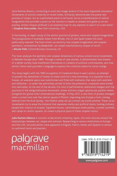 The study begins with the 1993 occupation of Claremont Road in east London, an attempt to prevent the demolition of homes to make room for a new motorway. In a squatted row of houses, all available space was transformed and filled with elements that were both aesthetic and defensive - so when the authorities arrived to evict the protestors, sculptures were turned into barricades. At the end of the decade, this kind of performative celebration merged with the practices of the antiglobalisation movement, where activists staged spectacular parallel events alongside the global elite's international meetings. As this book shows, social movements try to erase the distance that separates reality and political desire, turning ordinary people into creators of utopias. Squatted houses, carnivalesque street parties, counter-summits, and camps in central squares, all create a physical place of these utopian visions