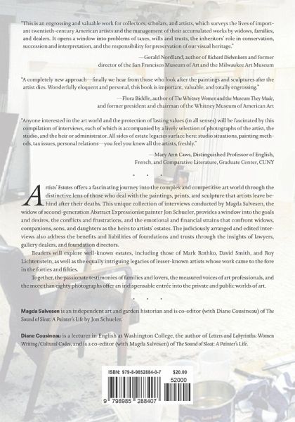 Artists' Estates offers a fascinating journey into the complex and competitive art world through the distinctive lens of those who deal with the paintings, prints, and sculpture that artists leave behind after their deaths. Bringing together interviews conducted by Magda Salvesen, the widow of the second-generation Abstract Expressionist painter Jon Schueler, this unique book provides a window into the goals and desires, the conflicts and frustrations, and the emotional and financial strains that confront widows, companions, sons, and daughters as the heirs to artists' estates. The judiciously arranged and edited interviews also address the benefits and liabilities of foundations and trusts through the insights of lawyers, gallery dealers, and foundation directors. Readers will explore well-known estates, including those of Roy Lichtenstein, Mark Rothko, Adolph Gottlieb, Milton Avery, Romare Bearden, and David Smith, as well as the equally intriguing legacies of lesser-known artists whose work came to the fore in the forties and fifties. Together, the passionate testimonies of families and lovers, the measured voices of art professionals, and the more than eighty photographs offer an indispensable entre into the private and public worlds of art.