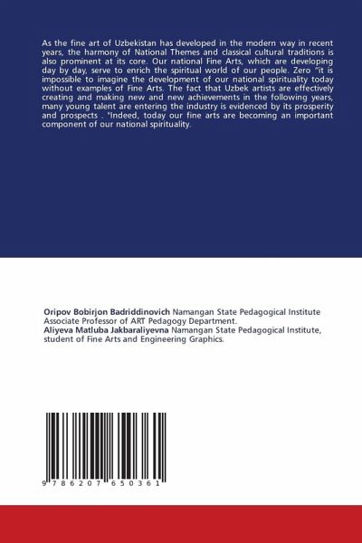 As the fine art of Uzbekistan has developed in the modern way in recent years, the harmony of National Themes and classical cultural traditions is also prominent at its core. Our national Fine Arts, which are developing day by day, serve to enrich the spiritual world of our people. Zero "it is impossible to imagine the development of our national spirituality today without examples of Fine Arts. The fact that Uzbek artists are effectively creating and making new and new achievements in the following years, many young talent are entering the industry is evidenced by its prosperity and prospects . "Indeed, today our fine arts are becoming an important component of our national spirituality.