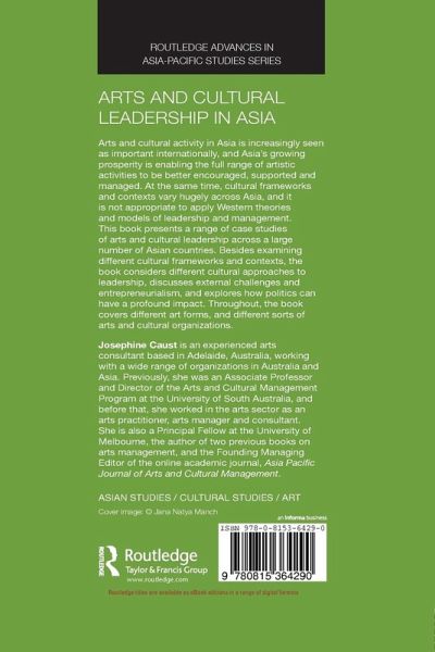 Arts and cultural activity in Asia is increasingly seen as important internationally, and Asia's growing prosperity is enabling the full range of artistic activities to be better encouraged, supported and managed. At the same time, cultural frameworks and contexts vary hugely across Asia, and it is not appropriate to apply Westerns theories and models of leadership and management. This book presents a range of case studies of arts and cultural leadership across a large number of Asian countries. Besides examining different cultural frameworks and contexts, the book considers different cultural approaches to leadership, discusses external challenges and entrepreneurialism, and explores how politics can have a profound impact. Throughout the book covers different art forms, and different sorts of arts and cultural organisations.