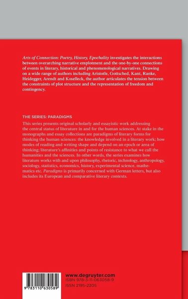 At the intersection of literary theory, philosophy of history and phenomenology, Arts of Connection: Poetry, History, Epochality explores the representation of connections between events in literary, historical and philosophical narratives. Events in a story can be seen as ordered according to proximate causation, which leads diachronically from one event to the next; and they can also be understood in view of the structure of the narrative as a whole - for instance in terms of the unity of plot. Feldman argues that there exists an essential narrative tension between these two kinds of connection, i.e. between the overarching arrangement or plot that holds together events from "outside," as it were, in order to produce an intelligible whole; and the portrayal of one-by-one, "interstitial" connections between events within the narrative. Arts of Connection demonstrates, by means of exemplary moments in Aristotle and classical German poetics, eighteenth-century philosophy of history, and twentieth-century phenomenology, that the task of connection is a fraught one, insofar as the formal unity of narrative competes or interferes with the representation of one-by-one connections between events, and vice versa.