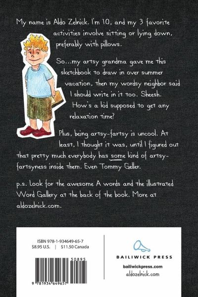 Aldo Zelnick is not an athlete like his older brother or a rock collector like his best friend; he’s just a regular kid who likes to draw. One summer Aldo's grandma, Goosy, gives him a sketchbook in which to record all of his ideas and adventures, and Aldo quickly discovers how much fun cartooning is. From petitioning for a neighborhood pool slide to his passion for slushies, Aldo illustrates his summer vacation, wacky friends, and loving family in this charming comic novel that blends text with illustrations on every page. Engaging and entertaining, the story and drawings in this book will captivate both enthusiastic and reluctant young readers. This first installment in an A-to-Z alphabet series includes a glossary of words to help kids broaden their vocabulary.