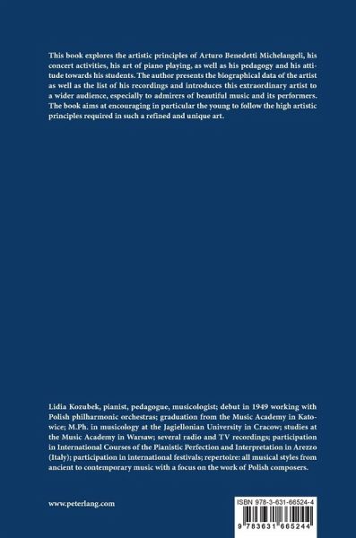 This book explores the artistic principles of Arturo Benedetti Michelangeli, his concert activities, his art of piano playing, as well as his pedagogy and his attitude towards his students. The author presents the biographical data of the artist as well as the list of his recordings and introduces this extraordinary artist to a wider audience, especially to admirers of beautiful music and its performers. The book aims at encouraging in particular the young to follow the high artistic principles required in such a refined and unique art.