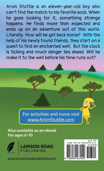 Arvin Stuttle is an eleven-year-old boy who can't find the match to his favorite sock. When he goes looking for it, something strange happens. He discovers more than expected and ends up on an adventure out of this world. Literally. His main concern now is how to get back home. With the help of his newly found friends, they set out on a quest to locate an enchanted well. But the clock is ticking, and much danger lies ahead. Will Arvin reach the well before his time runs out? Find out in the fun-filled adventure story for kids ages 6-10.