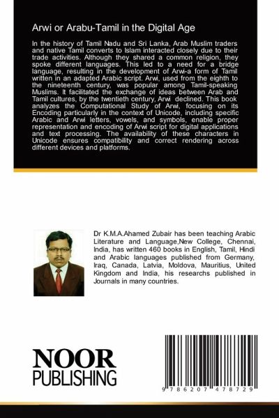 In the history of Tamil Nadu and Sri Lanka, Arab Muslim traders and native Tamil converts to Islam interacted closely due to their trade activities. Although they shared a common religion, they spoke different languages. This led to a need for a bridge language, resulting in the development of Arwi-a form of Tamil written in an adapted Arabic script. Arwi, used from the eighth to the nineteenth century, was popular among Tamil-speaking Muslims. It facilitated the exchange of ideas between Arab and Tamil cultures, by the twentieth century, Arwi declined. This book analyzes the Computational…mehr