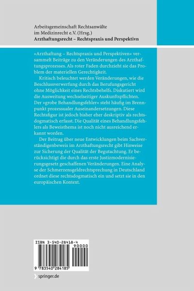 "Arzthaftung - Rechtspraxis und Perspektiven" versammelt Beiträge zu den Veränderungen des Arzthaftungsprozesses. Als roter Faden durchzieht sie das Problem der materiellen Gerechtigkeit.