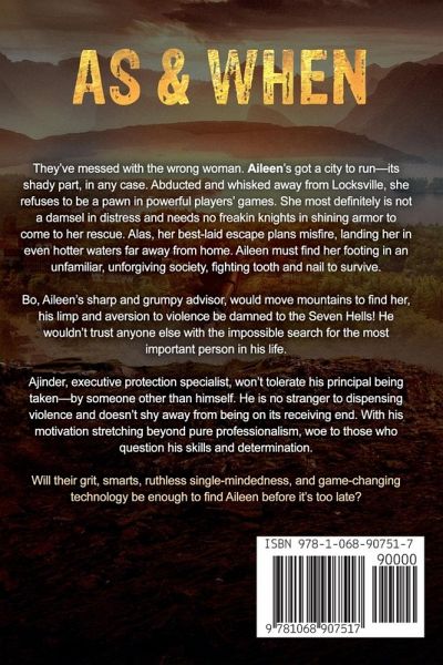 They've messed with the wrong woman. Aileen's got a city to run-its shady part, in any case. Abducted and whisked away from Locksville, she refuses to be a pawn in powerful players' games. She most definitely is not a damsel in distress and needs no freakin knights in shining armor to come to her rescue. Alas, her best-laid escape plans misfire, landing her in even hotter waters far away from home. Aileen must find her footing in an unfamiliar, unforgiving society, fighting tooth and nail to survive. Bo, Aileen's sharp and grumpy advisor, would move mountains to find her, his limp and aversion to violence be damned to the Seven Hells! He wouldn't trust anyone else with the impossible search for the most important person in his life. Ajinder, executive protection specialist, won't tolerate his principal being taken-by someone other than himself. He is no stranger to dispensing violence and doesn't shy away from being on its receiving end. With his motivation stretching beyond pure professionalism, woe to those who question his skills and determination. Will their grit, smarts, ruthless single-mindedness, and game-changing technology be enough to find Aileen before it's too late? As & When is Book 2 of The E Apocrypha. Meet familiar faces from Lost & Found. Return to Locksville, New Kowloon, The Station, as well as discover new corners of the world that had lost all technology. Content warnings: occasional coarse language, non-gratuitous violence, mild (implied) sensual descriptions. Please note: this title is also available as a professionally narrated audiobook on Audible! Readers' Favorite: ...Following on from the events of Lost and Found, we find ourselves with a very different set of leading figures as an outraged Aileen refuses to fall prey to her kidnappers. Meanwhile, her advisor Bo and protection specialist Ajinder set about a ruthless rescue mission in a dystopian world where the right technology is rare enough to command a dangerous price. One of the things I particularly enjoyed about this novel was the ability to jump right into a fresh storyline mid-series without having to know everything about the first work. Whether you've read and enjoyed Lost and Found or not, author Alex Andre showcases yet more skill for variety in cinematic worldbuilding by introducing us to a new place far from Locksville and the changing attitudes and survival strategies of the people living there. It's the richness in this kind of dystopian world that makes for an expansive and inviting series, and when that's coupled with Andre's talent for creating tense scenes, compelling dialogue, and a twisting plot that takes sudden shocking turns, it's a true recipe for success. I can't wait to see what comes next in this brave and terrifying new world, and I'd definitely recommend As & When to fans of dystopian thrillers everywhere.