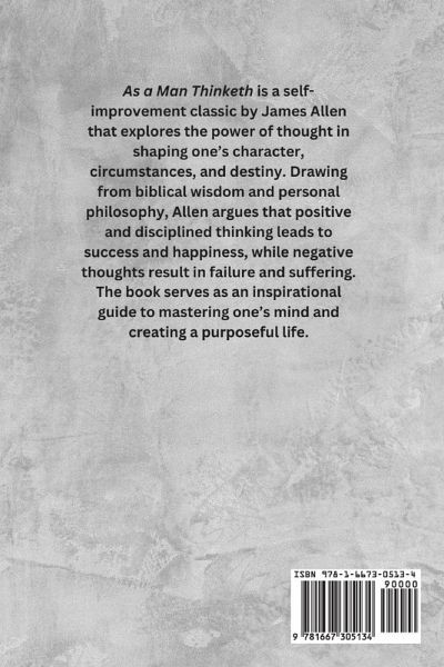 As a Man Thinketh is a self-improvement classic by James Allen that explores the power of thought in shaping one's character, circumstances, and destiny. Drawing from biblical wisdom and personal philosophy, Allen argues that positive and disciplined thinking leads to success and happiness, while negative thoughts result in failure and suffering. The book serves as an inspirational guide to mastering one's mind and creating a purposeful life.