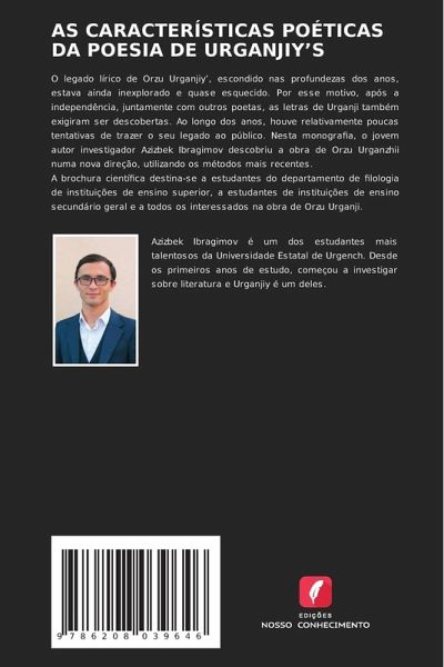 O legado lírico de Orzu Urganjiy¿, escondido nas profundezas dos anos, estava ainda inexplorado e quase esquecido. Por esse motivo, após a independência, juntamente com outros poetas, as letras de Urganji também exigiram ser descobertas. Ao longo dos anos, houve relativamente poucas tentativas de trazer o seu legado ao público. Nesta monografia, o jovem autor investigador Azizbek Ibragimov descobriu a obra de Orzu Urganzhii numa nova direção, utilizando os métodos mais recentes.A brochura científica destina-se a estudantes do departamento de filologia de instituições de ensino superior, a estudantes de instituições de ensino secundário geral e a todos os interessados na obra de Orzu Urganji.