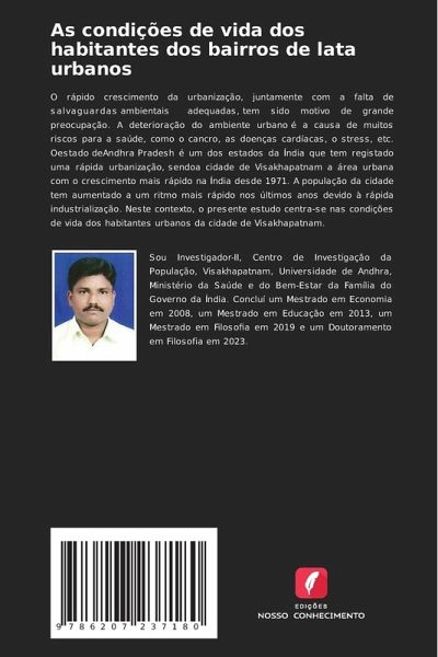 O rápido crescimento da urbanização, juntamente com a falta de salvaguardas ambientais adequadas, tem sido motivo de grande preocupação. A deterioração do ambiente urbano é a causa de muitos riscos para a saúde, como o cancro, as doenças cardíacas, o stress, etc. Oestado deAndhra Pradesh é um dos estados da Índia que tem registado uma rápida urbanização, sendoa cidade de Visakhapatnam a área urbana com o crescimento mais rápido na Índia desde 1971. A população da cidade tem aumentado a um ritmo mais rápido nos últimos anos devido à rápida industrialização. Neste contexto, o presente estudo centra-se nas condições de vida dos habitantes urbanos da cidade de Visakhapatnam.