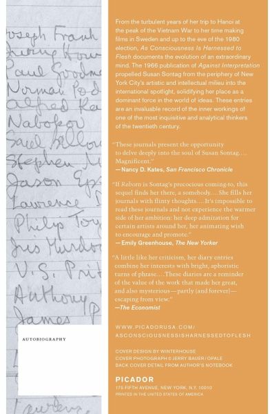A Financial Times Best Book of 2012 From the turbulent years of her trip to Hanoi at the peak of the Vietnam War to her time making films in Sweden and up to the eve of the 1980 election, As Consciousness Is Harnessed to Flesh documents the evolution of an extraordinary mind. The 1966 publication of Against Interpretation propelled Susan Sontag from the periphery of New York City's artistic and intellectual milieu into the international spotlight, solidifying her place as a dominant force in the world of ideas. These entries are an invaluable record of the inner workings of one of the most inquisitive and analytical thinkers of the twentieth century.