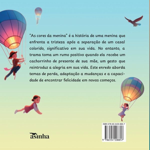 As cores da menina é a história de uma menina que enfrenta a tristeza após a separação de um casal colorido, significativo em sua vida. No entanto, a trama toma um rumo positivo quando ela recebe um cachorrinho de presente de sua mãe, um gesto que reintroduz a alegria em sua vida. Este enredo aborda temas de perda, adaptação a mudanças e a capacidade de encontrar felicidade em novos começos.