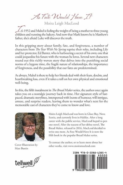 It's 1952 and Mabel is feeling the weight of being a mother to three young children and running the bakery. And now that Mark knows he is Matthew's father, she's afraid Luke will discover the truth. In this gripping story about family, fate, and forgiveness, a number of characters from The Year With No Spring reprise their roles, including Lily and her protector, Ed Baxter, who is harbouring a secret of his own; one that could jeopardize his future with the woman he loves. Several new characters round out this richly woven story that delves into the punishing social norms of a bygone time, the fragile nature of relationships, the importance of forgiveness, and the possibility that our fates are predetermined. As always, Mabel is there to help her friends deal with their fears, doubts, and heartbreaking loss, even if it takes a toll on her own physical and emotional well-being. In this, the fifth instalment in The Bread Maker series, the author once again takes you on a nostalgic journey back in time. Her signature style of fast-paced, dramatic storylines, interspersed with bursts of humour, will intrigue, amuse, and surprise readers, leaving them to wonder what's next for the memorable cast of characters they've come to know and love.