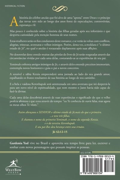 A história do célebre ancião que foi alvo de uma "aposta" entre Deus e o príncipe das trevas tem sido ao longo dos anos fonte de especulações, controvérsias, esperança e fé. Mas pouco é conhecido sobre a história das filhas geradas após seu infortúnio e que desperta curiosidade pela menção honrosa de seus nomes. Estas mulheres serão os fios condutores deste romance, e se verão às voltas com conflitos, alegrias, tristezas, aventuras e velhos inimigos. Porém, desta vez, a moldura é "o último estado de Jó", no qual o ancião é restaurado duplamente após suas aflições. No desenrolar deste enredo muitas das pérolas do livro de Jó serão resgatadas através das circunstâncias vividas por cada uma delas, costurando-as as experiências de seu pai. Yemimah enfrenta antigos inimigos de Jó, e através deles entende preceitos imemoriais, contempla novos horizontes e guia o pai a novos concertos. A sensível e sábia Ketzia empreenderá uma jornada ao lado do seu grande amor, espalhando os frutos resultantes de sua história ao longo de seu caminho. E a bela e vaidosa Kerenhapuk será arremessada em uma aventura que irá despertá-la para um novo nível de espiritualidade, que nem mesmo o Justo havia sido capaz de fazê-la divisar. Cada uma delas descobrirá através de suas experiências o significado do que o velho profeta afirmou e que ecoa através do tempo: "eu Te conhecia de ouvir falar, mas agora os meus olhos Te vêem." Assim abençoou o SENHOR o último estado de Jó,mais do que o primeiro. ...e teve três filhas. E chamou o nome da primeira Yemimah, o nome da segunda Ketzia, e o da terceira Kerenhapuk. E seu pai lhes deu herança entre seus irmãos. Jó 42:12-15