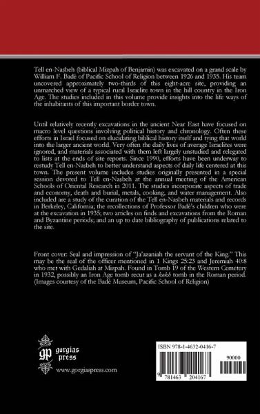 Tell en-Nasbeh (biblical Mizpah of Benjamin) was excavated on a grand scale by William F. Badè of Pacific School of Religion between 1926 and 1935. His team uncovered approximately two-thirds of this eight-acre site, providing an unmatched view of a typical rural Israelite town in the hill country in the Iron Age. The studies included in this volume provide insights into the life ways of the inhabitants of this important border town. Until relatively recently excavations in the ancient Near East have focused on macro level questions involving political history and chronology. Often these efforts in Israel focused on elucidating biblical history itself and tying that world into the larger ancient world. Very often the daily lives of average Israelites were ignored, and materials associated with them left largely unstudied and relegated to lists at the ends of site reports. Since 1990, efforts have been underway to restudy Tell en-Nasbeh to better understand aspects of daily life centered at this town. The present volume includes studies originally presented in a special session devoted to Tell en-Nasbeh at the annual meeting of the American Schools of Oriental Research in 2011. The studies incorporate aspects of trade and economy, death and burial, metals, cooking, and water management. Also included are a study of the curation of the Tell en-Nasbeh materials and records in Berkeley, California; the recollections of Professor Badè's children who were at the excavation in 1935; two articles on finds and excavations from the Roman and Byzantine periods; and an up to date bibliography of publications related to the site.