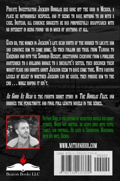 Private Investigator Jackson Douglas has gone off the grid in Mexico, a place he notoriously despises, and it seems to have nothing to do with a case. Instead, all evidence suggests he has purposefully disappeared with no interest in being found-or in much of anything at all. Even so, the women in Jackson's life head south of the border to locate him and convince him to come home. As they follow his trail from Tijuana to Ensenada and into the Sonoran Desert, questioning everyone from a poolside bartender to a bullring bookie to a socialite's sister, they discover their worst fears and doubts about Jackson seem to have come true. With varying levels of belief in whether Jackson can be saved, they pursue him to the end . . . while hoping it isn't. As Good As Dead is the fourth short story in The Douglas Files, and bridges the penultimate and final full-length novels in the series.